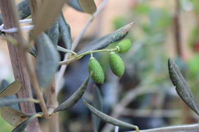 | Olives on our new trees, Cory's first olive tree. |